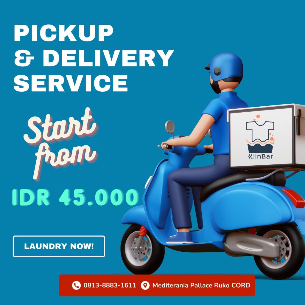 - Biaya pick up dan delivery free tanpa ada biaya tambahan termasuk parkir, minimal order adalah 45.000.